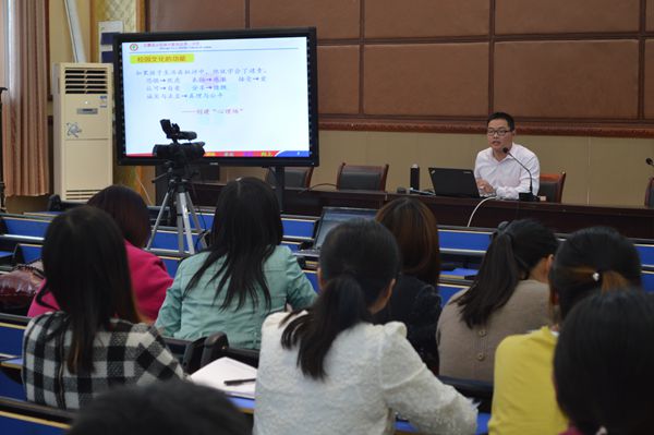 王德寶老師以《文化引領(lǐng),和諧校園》為主題,結(jié)合自己多年的工作實(shí)踐,深入淺出地闡述了環(huán)境文化、精神文化、制度文化、行為文化的內(nèi)涵和外延。他說,校園文化有物質(zhì)文化、精神文化、課程文化、制度文化、班級(jí)文化等。這些文化建設(shè)直接啟迪和熏陶學(xué)生的情感與行為。他結(jié)合自己所在學(xué)校的實(shí)際情況列舉一些事例,使聽課的老師們連連發(fā)出贊嘆,爆發(fā)出陣陣掌聲。