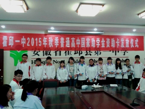 10月30—31日,霍邱一中向家境貧困學生再次發(fā)放了2015年度國家助學金。