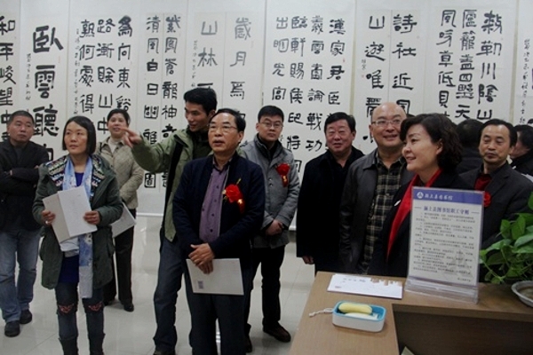 此次展覽由潁上縣委宣傳部、潁上縣文廣新局、潁上縣文聯(lián)、潁州區(qū)書畫院、安徽金種子集團(tuán)和潁上徽蘊(yùn)商行主辦,潁上縣圖書館、潁上縣書法家協(xié)會、潁上縣美術(shù)家協(xié)會承辦,參加開展儀式的嘉賓有:阜陽市人大常委會副主任王康建、安徽省書法家協(xié)會副主席任智、六安市美協(xié)主席孫玉石、江蘇大學(xué)藝術(shù)學(xué)院碩士研究生導(dǎo)師徐志敏等。此次,共展出了南京市、六安市、阜陽市的10名書畫名家的作品近200件,風(fēng)格多樣、精彩紛呈。部分書畫愛好者看完參展作品后說:這是一次高水平、高質(zhì)量的書畫作品聯(lián)展。