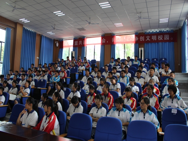 會(huì)場上,清華師生慷慨激昂地演講,一中同學(xué)們聽的認(rèn)真,不時(shí)發(fā)出熱烈的掌聲。