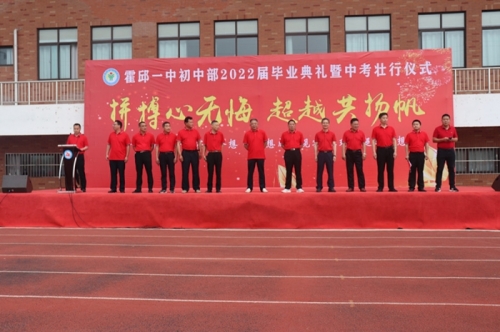 5月30日清晨,霍邱一中初中部(霍邱三中)2022屆“拼搏心無悔 超越共揚(yáng)帆”畢業(yè)典禮暨中考壯行儀式在學(xué)校操場隆重舉行。霍邱一中校長楊明生,副校長、初中部校長鄭家金攜初中部全體班子成員及七、八年級師生為即將參加2022屆中考的近兩千名九年級師生壯行。九年級部分家長代表應(yīng)邀參加了本次活動。壯行活動由初中部副校長謝運(yùn)連主持。