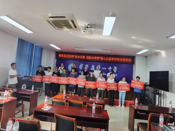 8月16日下午,霍邱縣2023年“臨水玉泉 我的大學(xué)夢”愛心公益助學(xué)圓夢行動(dòng)愛心公益助學(xué)款發(fā)放儀式在一中行政樓舉行。