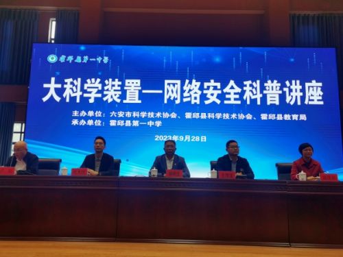 9月28日上午,霍邱縣“大科學(xué)裝置—網(wǎng)絡(luò)安全科普講座”活動(dòng)在霍邱一中圖書館報(bào)告廳舉辦。霍邱縣科協(xié)副主席陸躍華與霍邱一中黨委書記王德寶、校長(zhǎng)楊明生,教科室、團(tuán)委負(fù)責(zé)人參加了活動(dòng)。