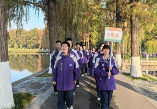 昔人已乘黃鶴去,此地空余黃鶴樓。黃鶴樓屹立于蛇山之巔,瀕臨于萬里長江,它見證了江城千年的歲月變遷,無數(shù)磅礴的詩詞造就了黃鶴樓深厚的人文底蘊。高二學子們分車號在黃鶴樓前高聲齊詠經典詩詞名篇,課本中的知識照進現(xiàn)實。同學們拾階而上,觀賞著生動豐富的楹聯(lián)壁畫,聆聽著流傳千古的仙鶴神話,穿梭于歷史名人的奇聞軼事,俯瞰著泱泱崛起的武漢三鎮(zhèn),于歷史與現(xiàn)代的連接中,民族自豪感油然而生。