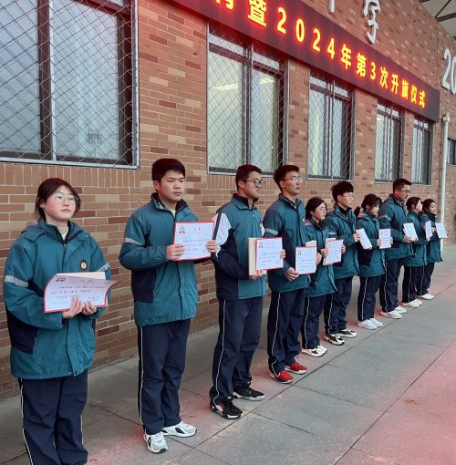 升旗儀式上的學生干部...