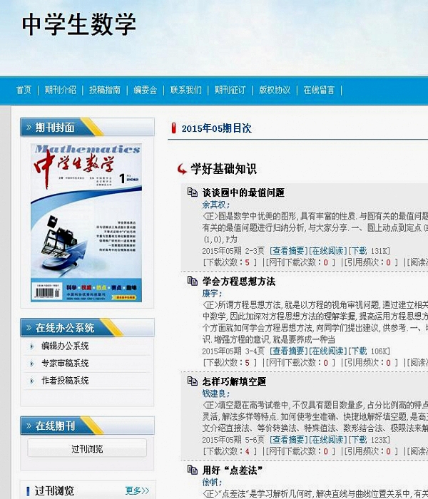 《中學(xué)生數(shù)學(xué)》創(chuàng)刊于1982年,是以中學(xué)生和中學(xué)數(shù)學(xué)教師為主要讀者對象,在全國公開發(fā)行的科普類期刊,深受全國中學(xué)生和老師們的歡迎。