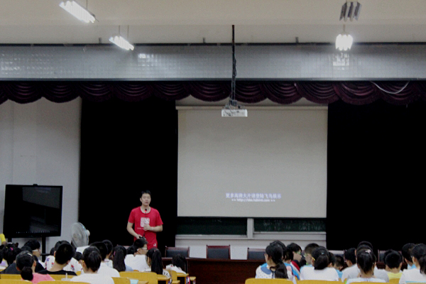 團隊成員們用英漢雙語簡要介紹了《國王的演講》在世界影壇的崇高地位——該影片于第35屆多倫多電影節(jié)獲得最高榮譽觀眾選擇大獎,在2011年第83屆奧斯卡金像獎評選時獲12項提名,并最終拿到最佳影片、最佳導(dǎo)演、最佳男主角、最佳原創(chuàng)劇本四項大獎,還獲得金球獎、美國制片人公會、導(dǎo)演公會和影視演員公會獎等多項提名和獎項;指出一部好的英文影片,不僅對學(xué)習(xí)英語尤其是口語有幫助,而且將影響學(xué)生的思想與行為,《國王的演講》是該團隊精挑細選后才選定的英文教學(xué)影片。他們還講解了正確觀看英文電影的方法如快速搶記住生詞、習(xí)慣結(jié)構(gòu),注意理解臺詞中的優(yōu)美詞、句、格言,觀看后在筆記本中寫出句子結(jié)構(gòu)完整的英語短文以復(fù)述電影主要情節(jié)等。