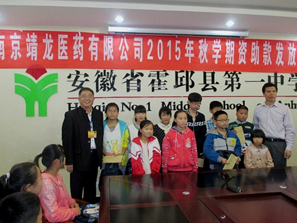 10月25日上午,南京靖龍醫(yī)藥有限公司2015年秋學(xué)期資助款發(fā)放儀式在霍邱一中第一會議室舉行。霍邱縣教育局黨委委員、霍邱一中校長楊明生,南京靖龍醫(yī)藥技術(shù)有限公司代表崔希林、方久珍、劉春、張池和霍邱縣愛心助學(xué)慈善協(xié)會負責(zé)人周康蕾、王德寶等出席儀式。霍邱縣51名受資助的品學(xué)兼優(yōu)貧寒學(xué)子與其所在學(xué)校代表、部分家長參加儀式。霍邱縣愛心助學(xué)慈善協(xié)會秘書長、霍邱一中校辦室主任陳濤主持儀式。