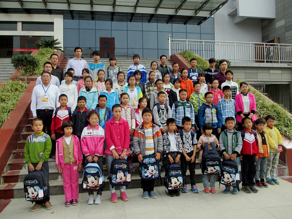 儀式上,楊明生、周康蕾、陳濤、王德寶與靖龍公司代表向受資助學(xué)生發(fā)放了資助善款、文具。