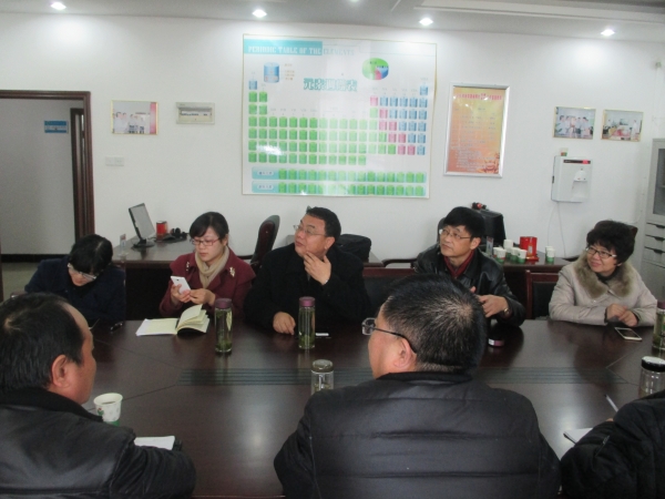 座談中,閆蒙鋼、史鐵杰高度肯定了霍邱一中建校以來與楊明生名師工作室成立后所取得的顯著成績,認為楊明生工作室的建設(shè)十分規(guī)范;開展的活動多,充滿活力;成績突出、成效明顯、成果豐碩。賓主雙方就加強安師大化學(xué)與材料科學(xué)學(xué)院和霍邱一中之間的交流與合作、中青年名師培養(yǎng)、課題研究、擴大教研成果輻射面、安師大化學(xué)與材料科學(xué)學(xué)院校友會的工作等議題進行了深入探討。