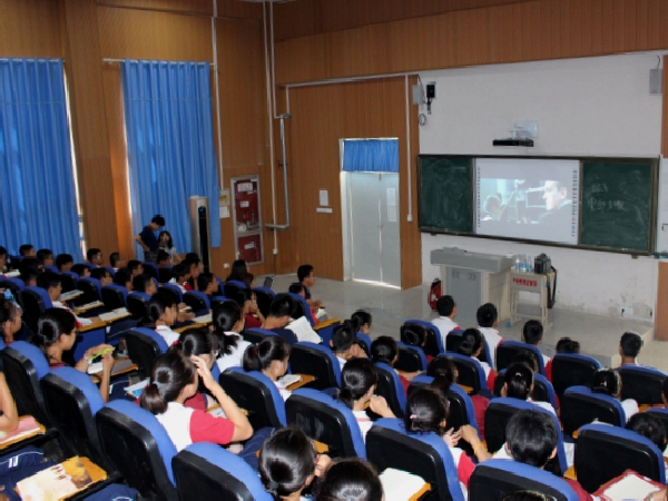 7月15日,清華大學(xué)支教團(tuán)隊(duì)組織霍邱一中部分學(xué)生觀看了英文教學(xué)影片《泰坦尼克號》。