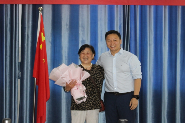 隨后,金亞東向他當(dāng)年的兩位老師敬獻(xiàn)了鮮花,感謝老師們對他的悉心培養(yǎng)。
