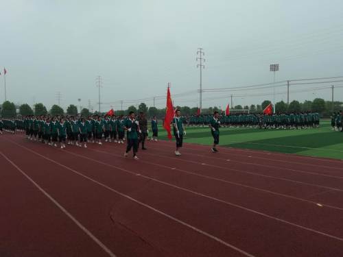 在莊嚴的國歌聲中,五星紅旗冉冉升起,全體師生肅立,向國旗行注目禮,軍訓匯報表演正式開始。
