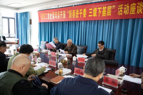 3月26日下午,省關(guān)工委赴霍邱縣開展“新春進(jìn)千委,三級(jí)下基層”活動(dòng)座談會(huì)在霍邱一中行政樓召開。省關(guān)工委主任張俊,省關(guān)工委常務(wù)副主任金春忠,市關(guān)工委主任汪永義,市關(guān)工委常務(wù)副主任薛建宏,縣委常委、縣委組織部長(zhǎng)劉潔心,縣關(guān)工委主任涂自勝,縣關(guān)工委常務(wù)副主任顧萬富、陳秀琳、周明等出席會(huì)議。會(huì)議由市關(guān)工委主任汪永義主持。
