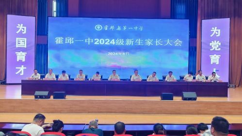8 月 15 日下午,霍邱一中在校圖書館報(bào)告廳召開了高一新生家長會(huì)。校黨委書記王德寶,校長許正田,副校長余其權(quán)、李開勝,校長助理陳濤,各部門負(fù)責(zé)人以及全體高一家長參加了此次會(huì)議。會(huì)議由王德寶主持。