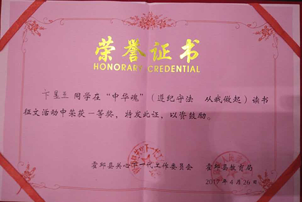 學(xué)生獲獎(jiǎng)證書